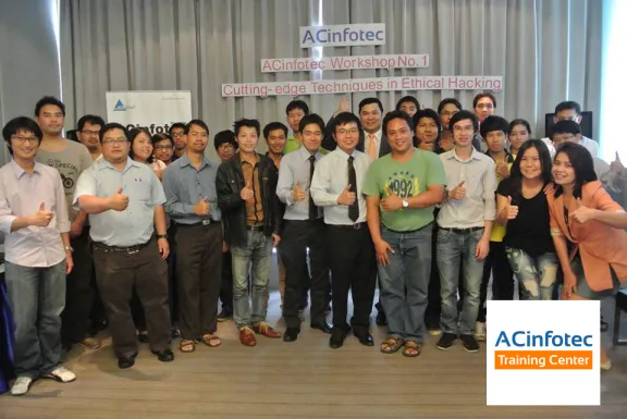 17 พฤษภาคม 2557 – ผ่านไปแล้วกับ Workshop No.1 “Cutting Edge Techniques in Ethical Hacking” เมื่อวันเสาร์ที่ 16 พ.ค. ณ I-Residence สีลม บรรยาศภายในงานเต็มไปด้วยความเรียบร้อย ผู้เข้าร่วมได้รับทั้งความรู้และเทคนิคต่าง ๆ ซึ่งทางทีมงานและตัววิทยากรจาก ACinfotec Training Center หวังเป็นอย่างยิ่งว่าทุกท่านที่มาร่วมงานจะได้นำเอาความรู้ที่ได้จาก Workshop นี้ไปใช้ในองค์กรหรือหน่วยงานไม่มากก็น้อย แล้วพบกันกับWorkshop ในครั้งต่อๆไป