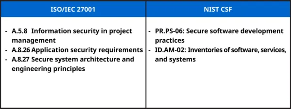 1.3 เกณฑ์การเลือกบริษัทพัฒนา: ต้องกำหนดเกณฑ์การเลือกบริษัทพัฒนาซอฟต์แวร์ที่มีประสบการณ์และผ่านมาตรฐานการรับรอง ซึ่งสอดคล้องกับมาตรการควบคุมตามมาตรฐาน ISO/IEC 27001 และ กรอบ NIST Cybersecurity Framework อาทิเช่น