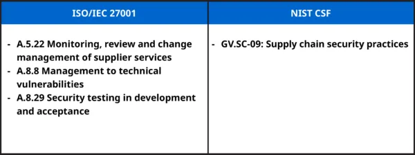 1.4 การกำกับดูแลและการทดสอบความปลอดภัย: ควรกำหนดให้มีติดตามการให้บริการและทำการทดสอบความปลอดภัยเป็นประจำ ทั้งในช่วงการพัฒนาและก่อนการใช้งานจริง ซึ่งสอดคล้องกับมาตรการควบคุมตามมาตรฐาน ISO/IEC 27001 และ กรอบ NIST Cybersecurity Framework อาทิเช่น