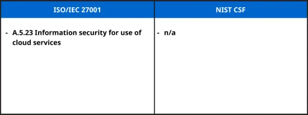 5.3 การปฏิบัติตามประกาศฯ: ด้านการรักษาความมั่นคงปลอดภัยไซเบอร์ระบบคลาวด์ ซึ่งสอดคล้องกับมาตรการควบคุมตามมาตรฐาน ISO/IEC 27001 อาทิเช่น