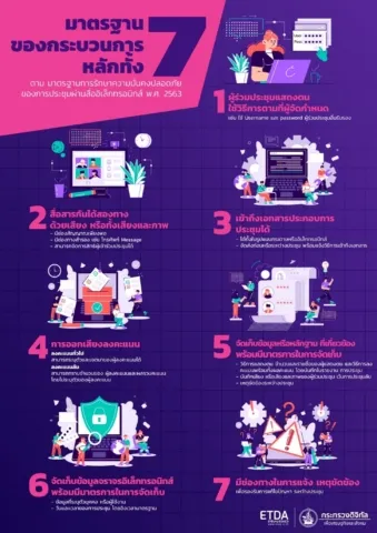 หน่วยงานไหนที่ต้องการใช้ระบบ e-Meeting ที่มีกฎหมายรับรอง สามารถใช้มาตรการทั้ง 7 มาตรฐานนี้ เพื่อเป็นการรักษาความมั่นคงปลอดภัยของการประชุมผ่านสื่ออิเล็กทรอนิกส์ พ.ศ. 2563 ดังนี้