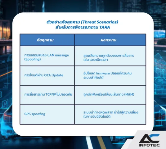 ตัวอย่างภัยคุกคาม (Threat Scenarios) สำหรับการพิจารณาตาม TARA