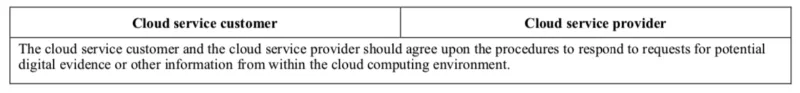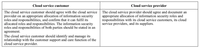 1. ผู้ให้บริการ และผู้ใช้บริการดำเนินการจัดทำระบบบริหารจัดการความมั่นคงปลอดภัยสารสนเทศ (Information Security Management System) ตามมาตรฐาน ISO/IEC 27001:2013 และผ่านการรับรอง จากนั้นจึงจัดทำ ISO/IEC 27017
