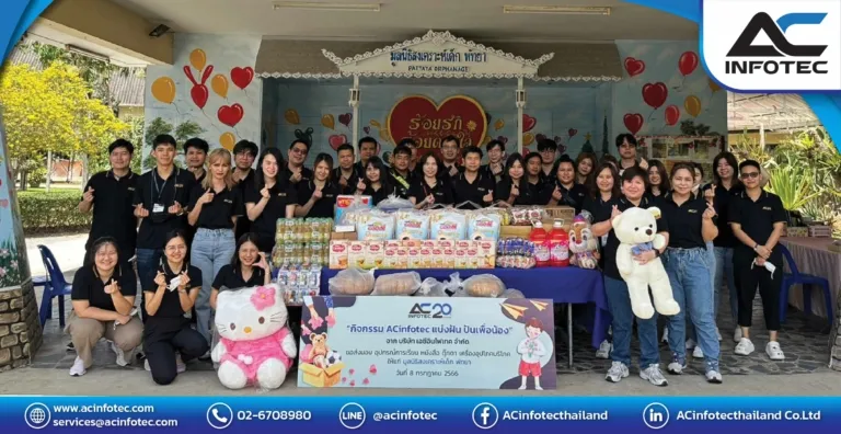 เนื่องในโอกาสครบรอบ 20 ปี บริษัท เอซีอินโฟเทค จำกัด นำโดย ดร.ศาศวัต มาลัยวงศ์ Business Director / Executive Consultant พร้อมด้วยพนักงาน จัดกิจกรรม “ACinfotec แบ่งฝันปันเพื่อน้อง” ร่วมส่งมอบอุปกรณ์การเรียน เครื่องอุปโภคบริโภค หนังสือและตุ๊กตามือสอง ให้แก่มูลนิธิสงเคราะห์เด็ก พัทยา เมื่อวันที่ 8 กรกฎาคม พ.ศ. 2566 ที่ผ่านมา โดยมีวัตถุประสงค์เพื่อส่งต่อสิ่งดี ๆ คืนสู่สังคมไทย มุ่งหวังสนับสนุนโอกาสทางการศึกษา พร้อมทั้งยกระดับคุณภาพชีวิตแก่เด็ก และเยาวชนที่จะเติบโตเป็นกำลังสำคัญในการพัฒนาประเทศไทยต่อไป