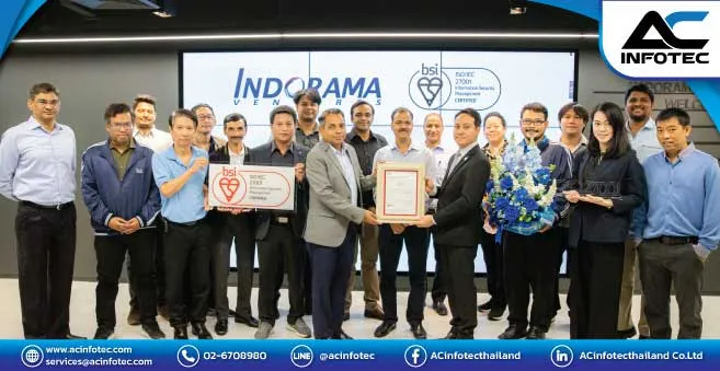 บริษัท เอซีอินโฟเทค จำกัด ในฐานะที่ปรึกษาการจัดทำมาตรฐาน ISO/IEC 27001:2013 จึงขอแสดงความยินดีในความสำเร็จในครั้งนี้ และเราพร้อมจะเป็นกำลังสำคัญที่จะคอยสนับสนุน บริษัท อินโดรามา เวนเจอร์ส จำกัด (มหาชน) ในโอกาสต่อไป